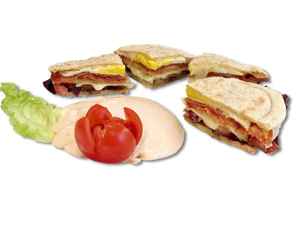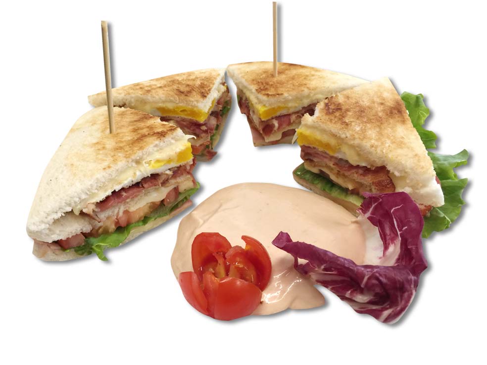 Club sandwich con diversi gusti e salsa rosa