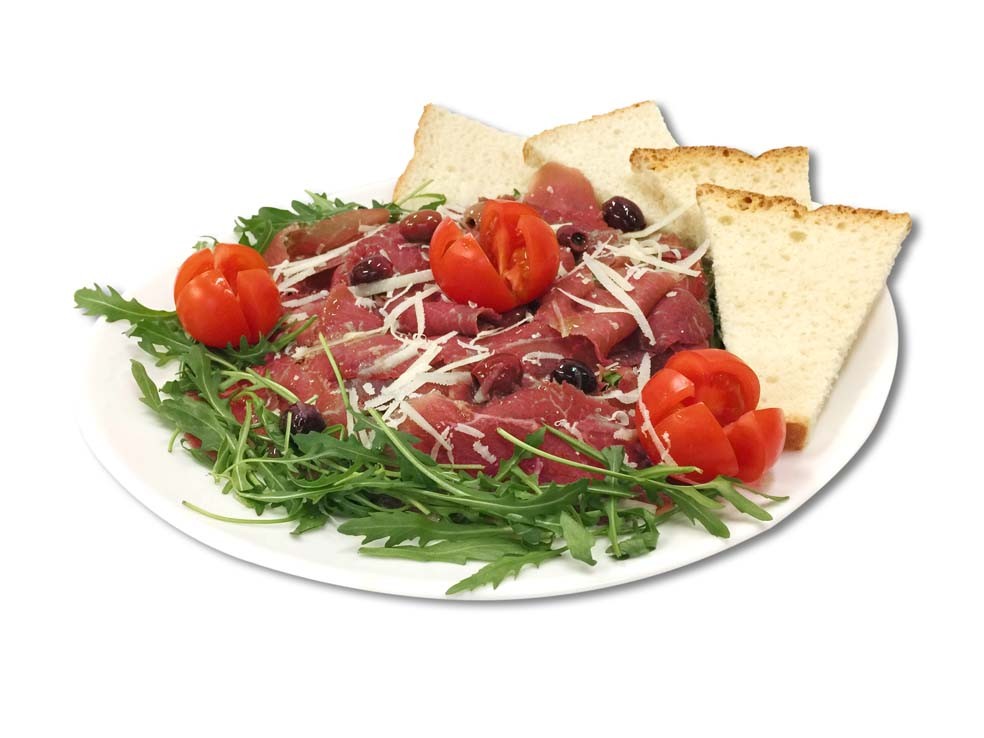 Carne di manzo marinata morbida e saporita su letto di rucola e grana