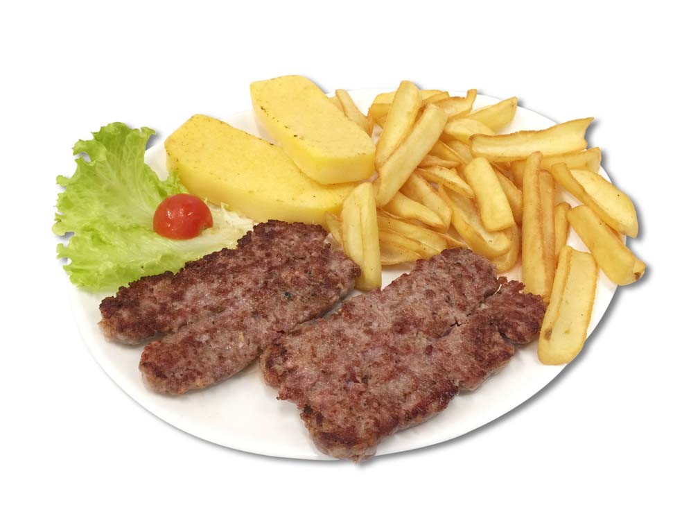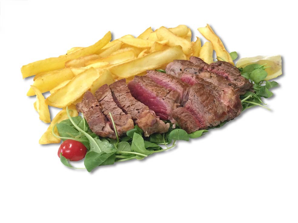Con carne di manzo o di bufalo. Accompagnato da patatine